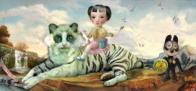 La pittura di Paolo Guido propone una rilettura del “vedutismo” rinascimentale, come nell’arte del grande artista americano Mark Ryden, leader e icona del movimento pop surrealista, che a sua volta trae ispirazione dai capolavori di Leonardo, Giorgione, Tiziano.